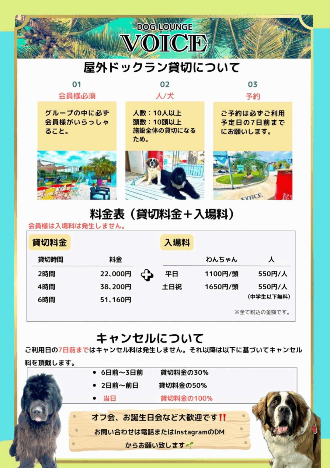 貸切予約が入った際はInstagramにてお知らせいたします。